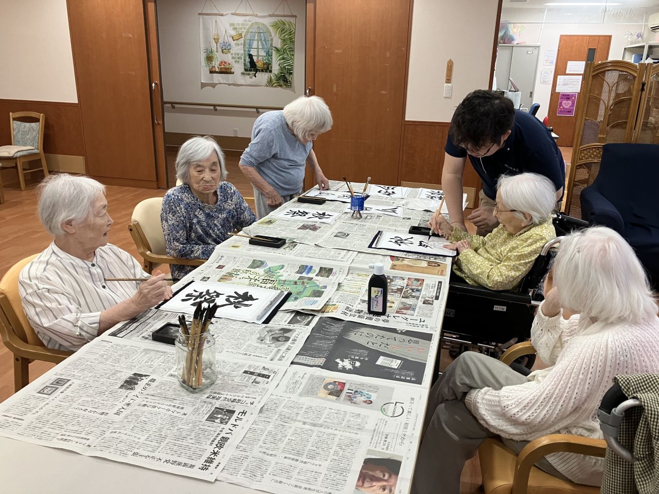 10月に入り、ロータスホーム悠では書道レクを開催しています♪