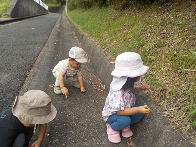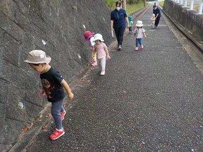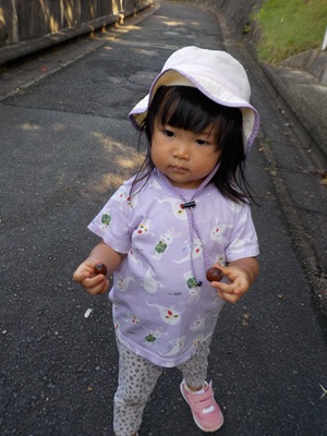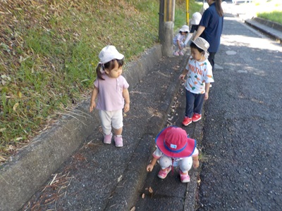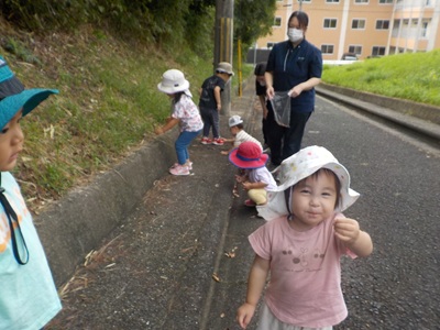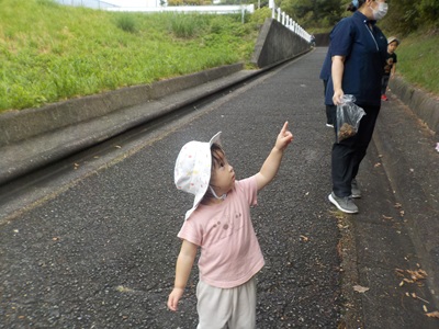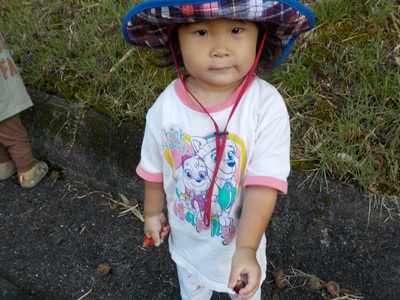 1・2歳児クラスのお友達は今日も元気にどんぐり拾いに出かけました!!