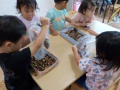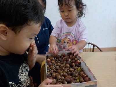色々な種類のどんぐりを拾えて大喜びの子ども達!!