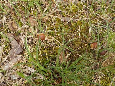 大きなもじゃもじゃ帽子を被ったままのクヌギのどんぐりや