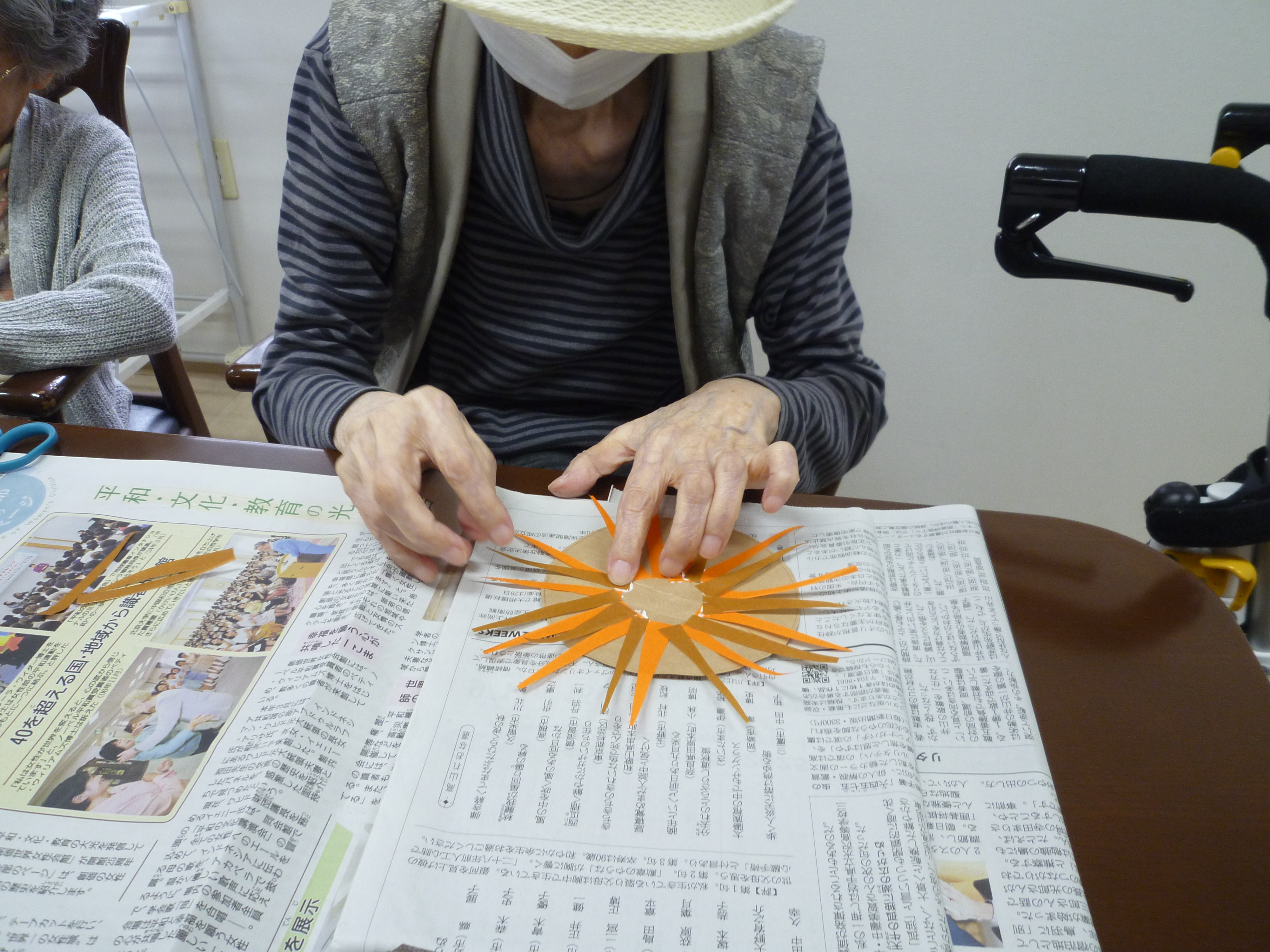 茶色の折り紙などでトゲトゲを作り張り付けておられました。