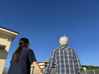 先日、アクールの屋上からご入居者様に澄み渡った空を見上げていただきました