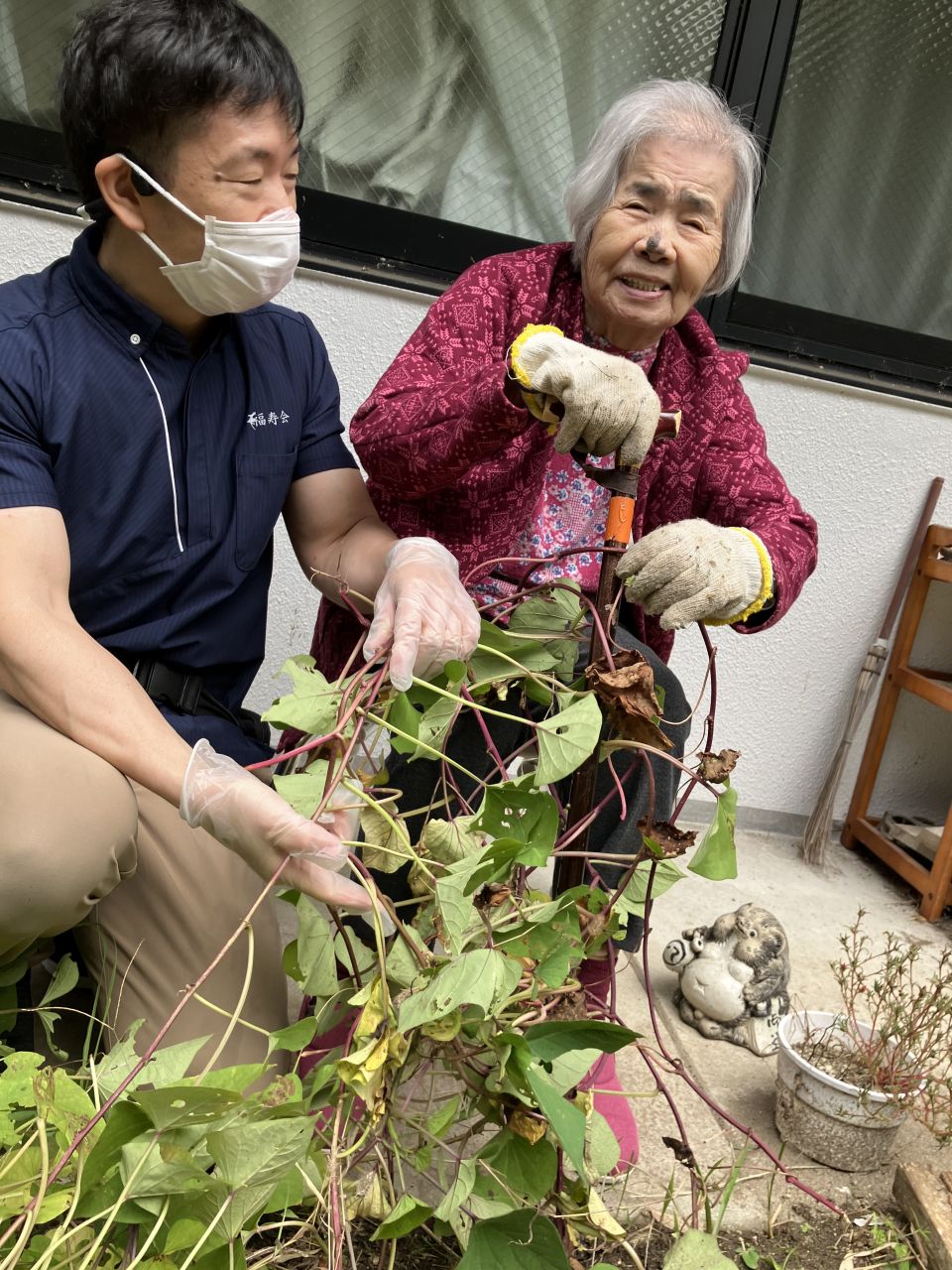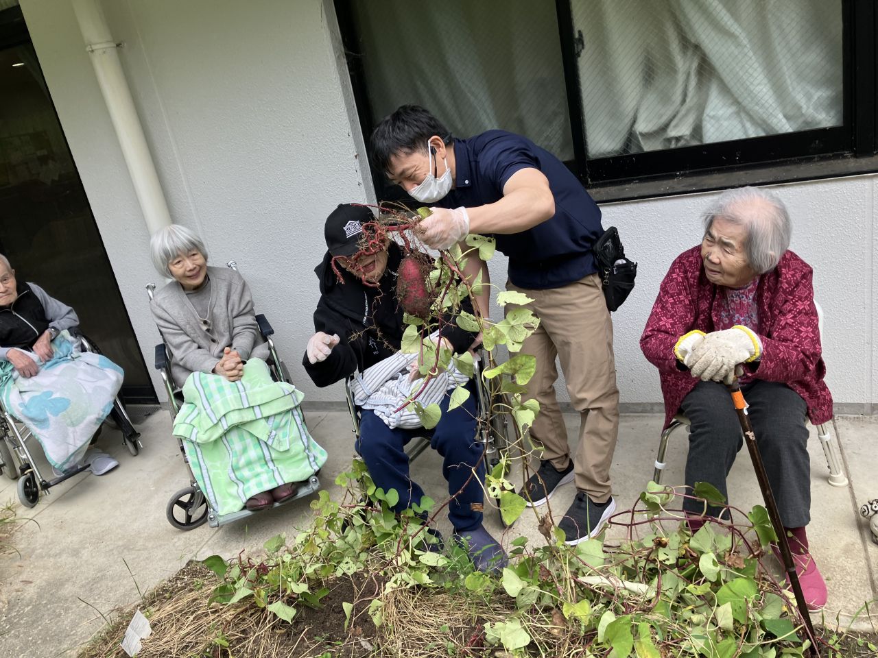 春に入居者様と一緒に植えたお芋の収穫です!