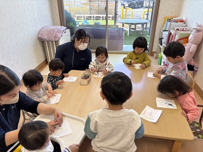 好きな絵を選んで、みんなで色塗りを頑張りました!!