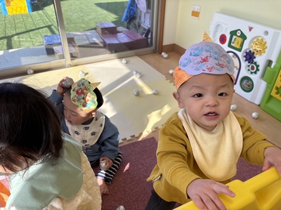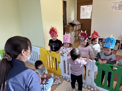 1.2歳児のお友だちが中心になって、楽しい豆まきをする事ができました!!