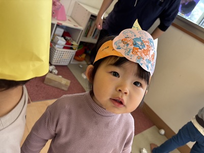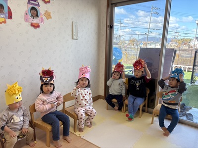 まずは1.2歳児クラスのお友だちが鬼さんに変身!!
