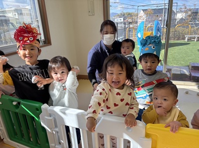保育では、1年健康で元気に過ごせますように!!の豆まきををしました