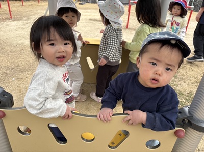 給食をいっぱい食べて、お昼寝をして夕方は、園庭でも楽しく遊びました