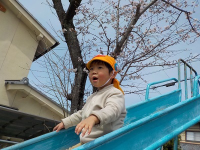滑り台では、桜のお花を見ながら、何度も滑りました。