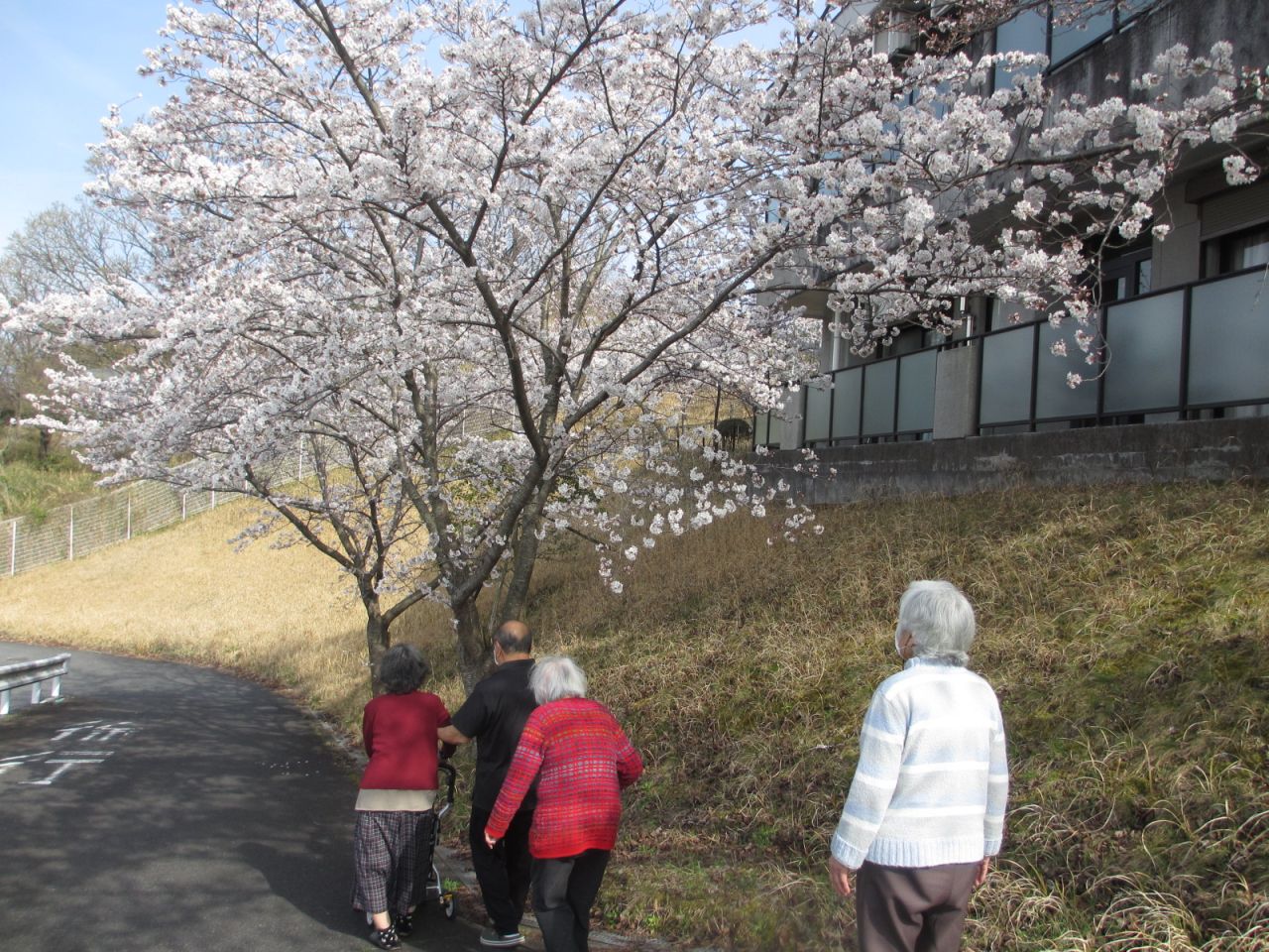 デイサービスの玄関からぐるっと園内で花見散歩を行いました♪