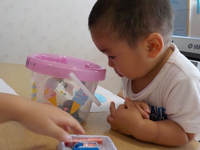 「青いお花!」「ピンクのお花!」好きな色を選んで、