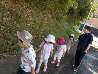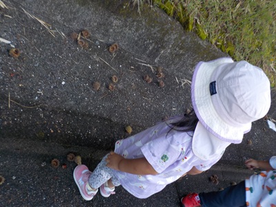 1・2歳児クラスのお友達は今日も元気にどんぐり拾いに出かけました!!