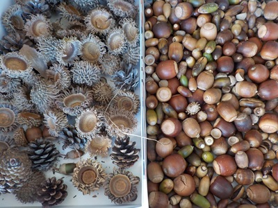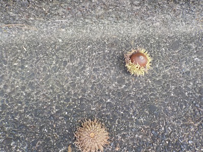 大きなもじゃもじゃ帽子を被ったままのクヌギのどんぐりや