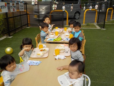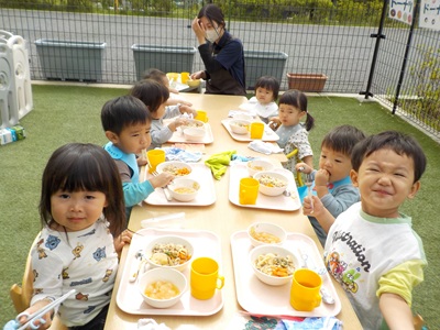美味しい給食を園庭で頂き、ぐっすりとお昼寝しました💤💤