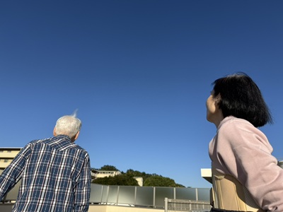 先日、アクールの屋上からご入居者様に澄み渡った空を見上げていただきました
