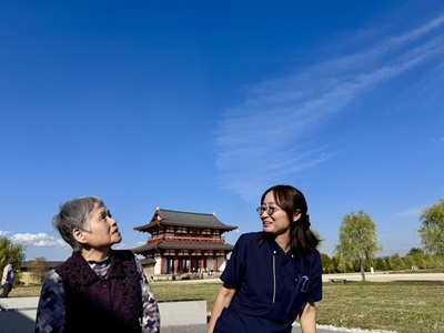 平城京跡歴史公園内をお散歩された後は、少し休憩です