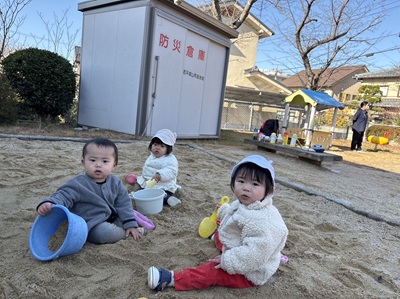 0歳クラスのお友だちは、お砂場がだーいすき!!