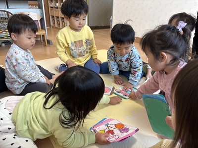 色々な絵がある中から、保育士が楽しい文章を読み上げます!!