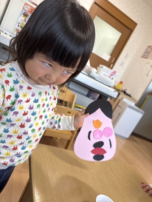 お正月遊びでは福笑いをしたり、手作りカルタで盛り上がりました!!