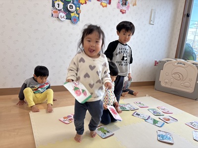 子ども達の思いが様々な形で、表現され楽しいカルタ遊びになりました!!