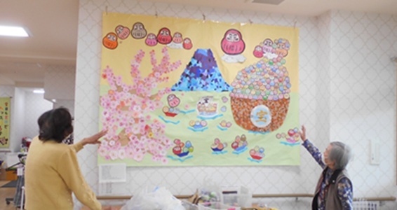 デイサービスフロアの壁には季節の飾りをしておりますが