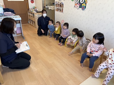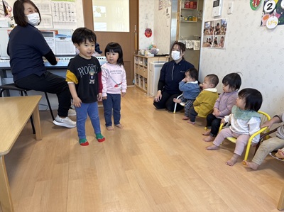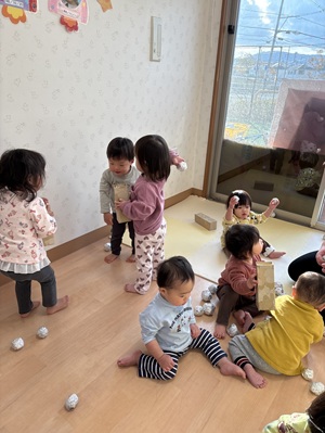 1.2歳児のお友だちが中心になって、楽しい豆まきをする事ができました!!