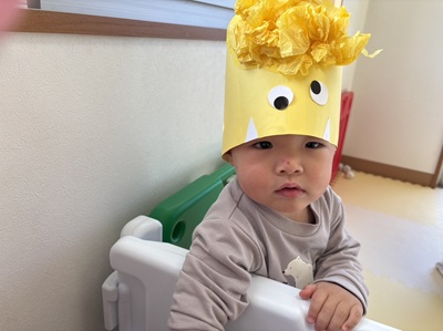 まずは1.2歳児クラスのお友だちが鬼さんに変身!!