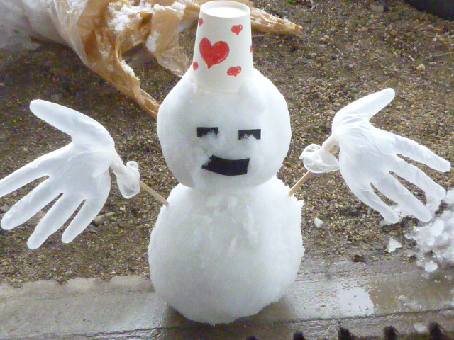 楽しそうに戻ってくると、雪だるまがありました