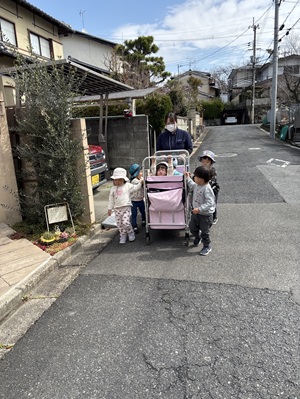お散歩カーをみんなで押しながら保育園に帰りました!