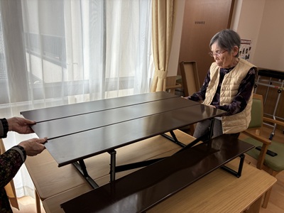 皆様とても興味津々でさっそく職員と一緒に飾り付けを開始