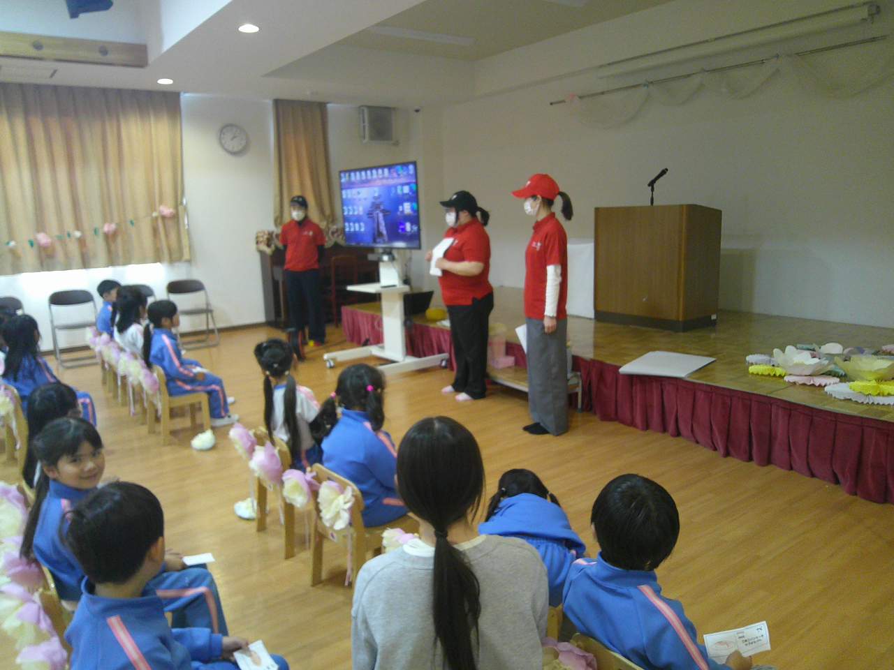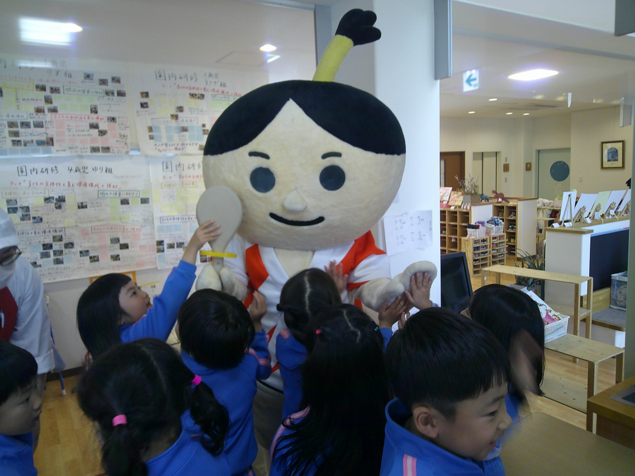 「今日は、お米丸がマミーズ保育園に遊びに来てくれていますよ」